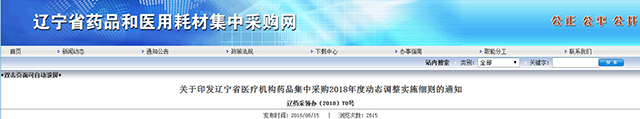 動態(tài)調(diào)整方式:對截至到2018年8月14曰通過國家仿制藥質(zhì)量和療效一致性評價的藥品 (以國家藥品監(jiān)督管理局公告為準(zhǔn))和國家談判藥品的仿制藥、已在遼寧省藥品和醫(yī)用耗材集中采購平臺掛網(wǎng)采購的藥品, 實行參考價掛網(wǎng)采購。