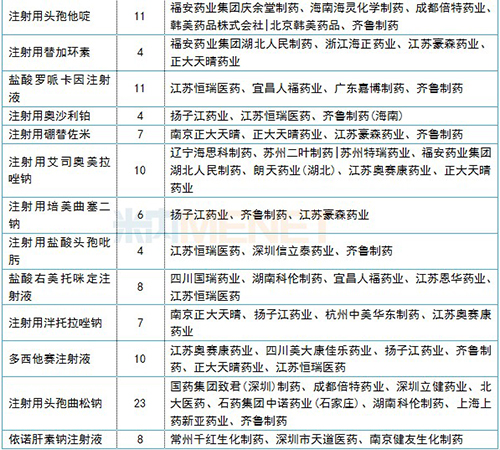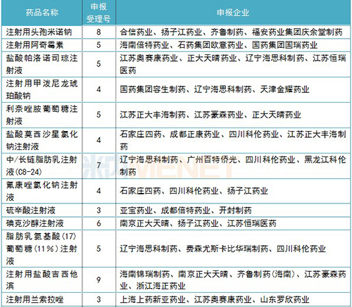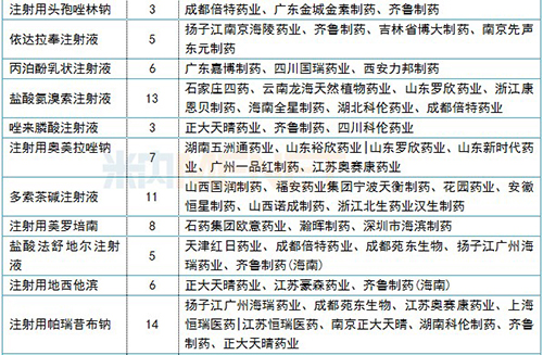 正在審評的注射劑一致性評價(jià)補(bǔ)充申請情況(3家及以上)
