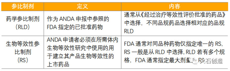 來源:根據(jù)公開資料整理 在1984年美國《藥品價格競爭和專利期修正法》(Hatch—Waxman法案)通過之前,仿制藥的審批程序與原研藥基本相同,仿制藥上市前需要與原研藥開展相等的安全性和有效性等研究,導(dǎo)致仿制藥上市時間滯后、成本居高不下。Hatch—Waxman法案則極大地簡化了仿制藥上市審批程序,仿制藥企業(yè)無需提交全面的臨床研究資料,只需證明仿制藥與原研藥具有生物等效性即可,稱為簡略新藥申請(Abbreviated New Drug Application,ANDA)。此外,F(xiàn)DA還建立了仿制藥生物等效性的具體指南數(shù)據(jù)庫,為仿制藥企業(yè)開展生物等效性研究提供指導(dǎo)和幫助。 (二)參比制劑 為了避免仿制藥與原研藥在療效上出現(xiàn)偏差,F(xiàn)DA規(guī)定了相同化學(xué)成分藥物的參比制劑,仿制藥只能將該參比制劑作為評價體內(nèi)或體外治療等效性的標(biāo)準(zhǔn)藥物。仿制藥與參比制劑應(yīng)具有相同的活性成分、劑型、規(guī)格、給藥途徑和說明書。FDA將仿制藥參比制劑分為藥學(xué)參比制劑(reference listed drug,RLD)和生物等效性參比制劑(reference standard,RS)。 表1:美國仿制藥參比制劑